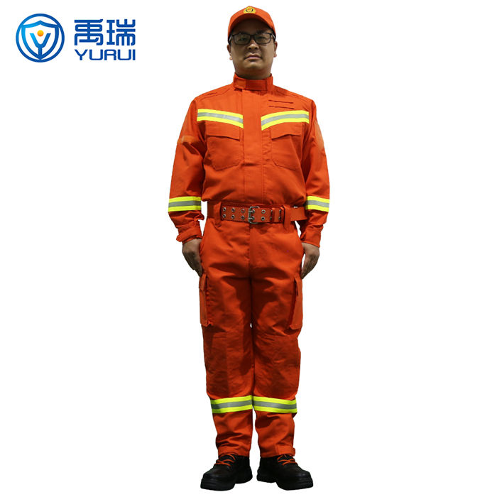 符合GA633-2006《消防員搶險救援防護服裝》標準要求和 《17式消防員搶險救援防護服款式標識統(tǒng)型要求》. 用于建筑倒塌、狹窄空間及攀登等救援現(xiàn)場的身體防護。具備阻燃、耐磨、輕便,抗拉力強、顏色及標識醒目等性能。款式分為夏款和冬款,整體顏色為橘紅。