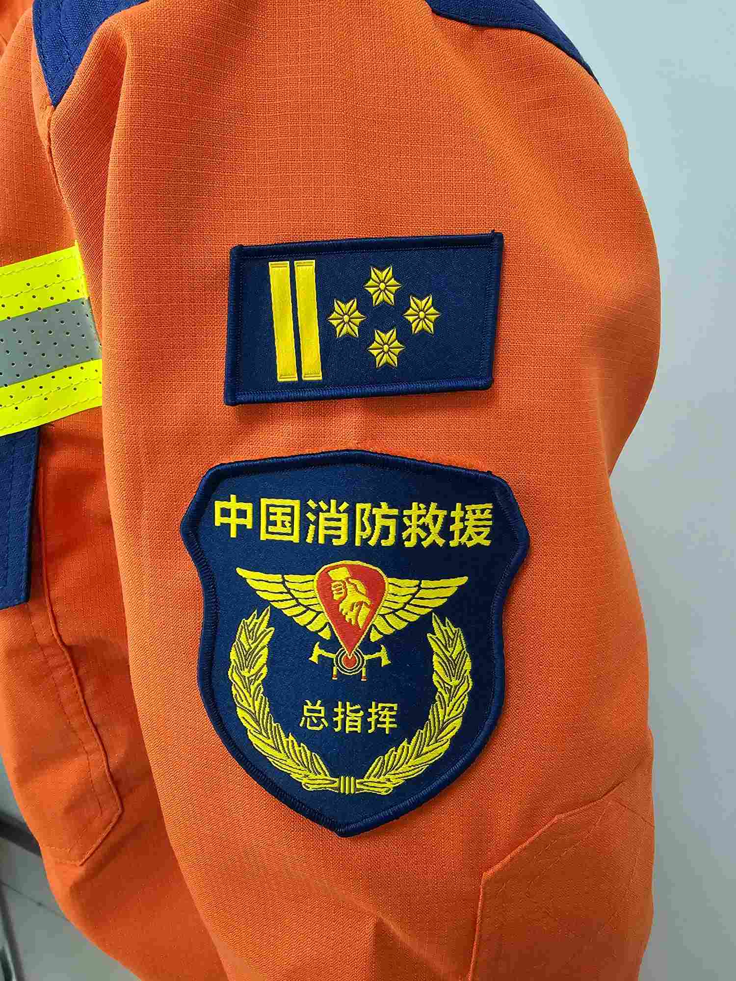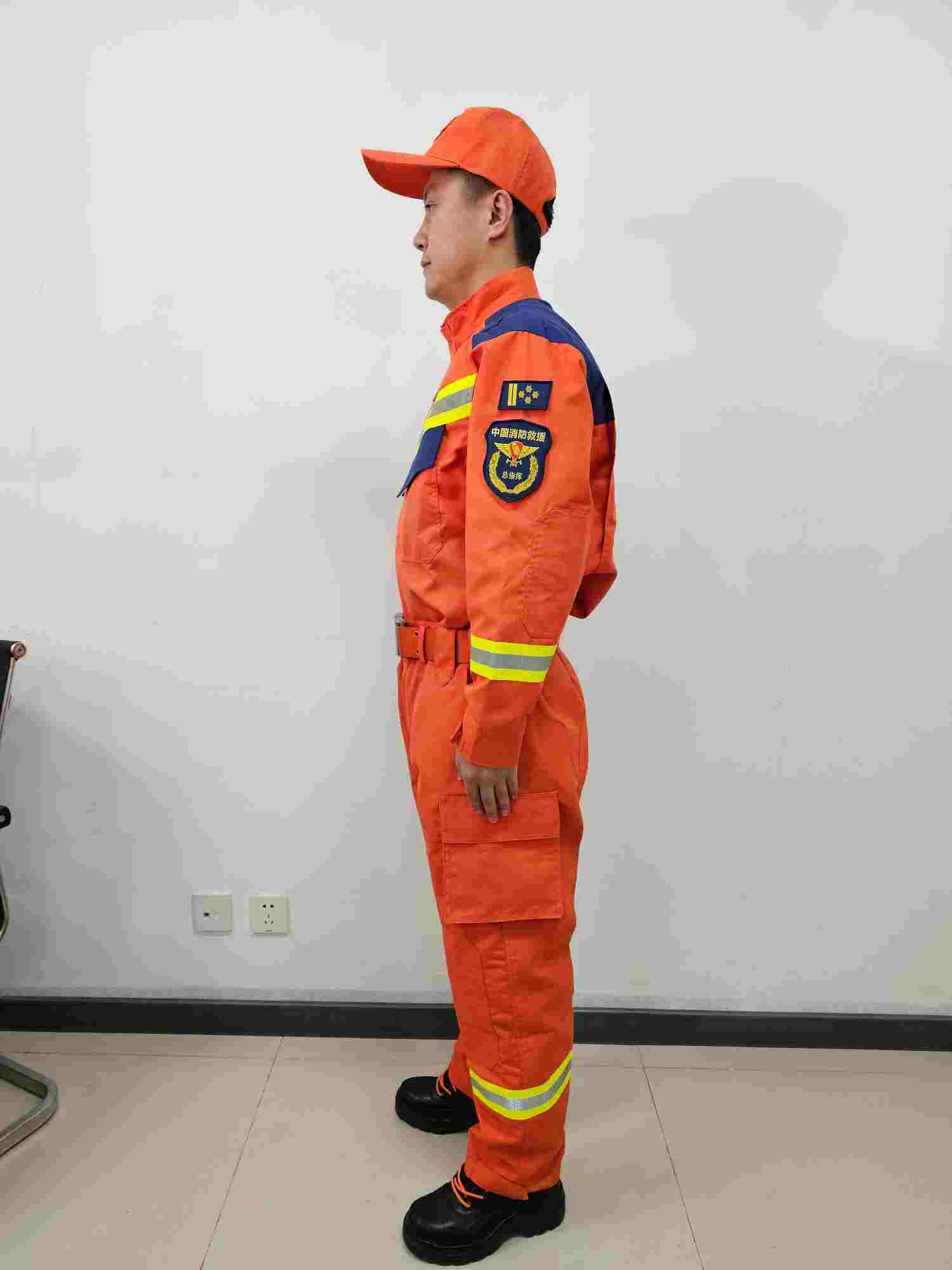 本消防員搶險救援服(以下簡稱救援服)符合國家XF633-2006《消防員搶險救援防護服裝》標準要求,外觀符合國家消防救援局最新統型要求。