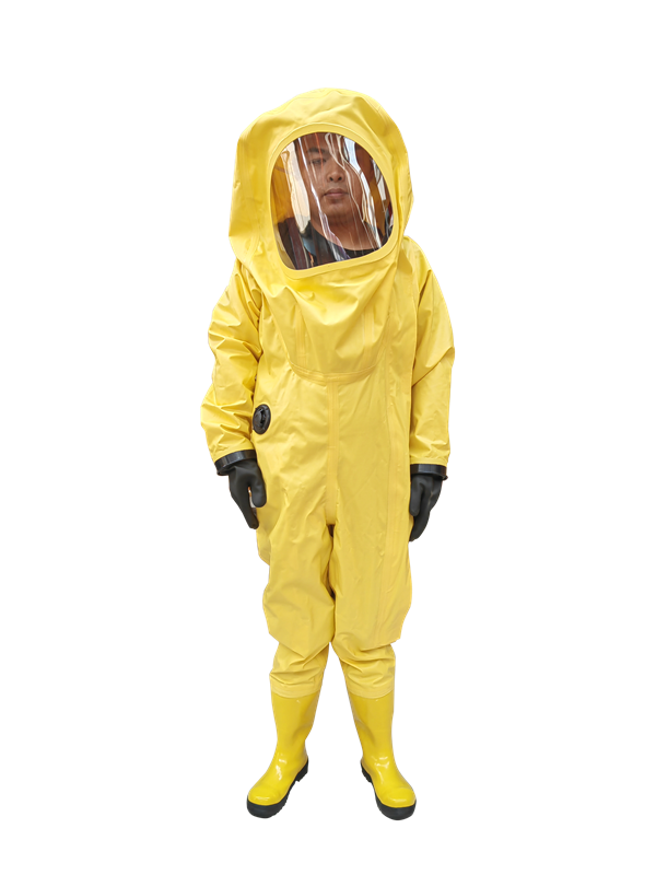 全密封防化服采用PVC雙面涂復織物材料制作,由帶大視野的連體頭罩、呼吸器背裹、耐穿刺防化膠靴、防化阻燃手套、密封拉鏈、通風系統組成,與頭盔、空氣呼吸器配套使用。主要適用于消防員在化學危險品、腐蝕性物質、有毒氣體的事故現場進行搶救援時穿著的全密封防護服裝。是現代消防員防護裝備中特種防護裝備。